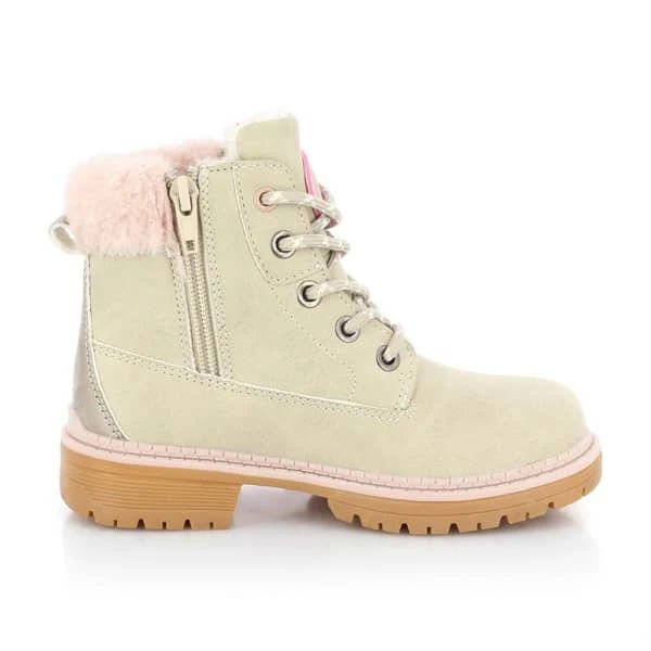 Fourrée, cette chaussure est composée d’une doublure chaude en polyester pour maintenir les pieds des enfants bien au chaud, tandis qu’elle présente une tige en polyuréthane résistante à l’eau et à la neige et qu’elle ajoute une bordure en fourrure synthétique pour encore plus de douceur.
