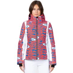Affichant un imprimé coloré d’inspiration 70’s sur un design sobre, ce modèle sait se distinguer et soigner sa technicité puisqu’il est fabriqué dans des matières stretch aux coutures étanches et aux propriétés imperméable et respirante. Ainsi, il garde les skieuses au sec durablement, mais également au chaud grâce à son isolation synthétique légère. De plus, des panneaux d’aisances extensibles sont placés pour décupler la sensation de liberté.